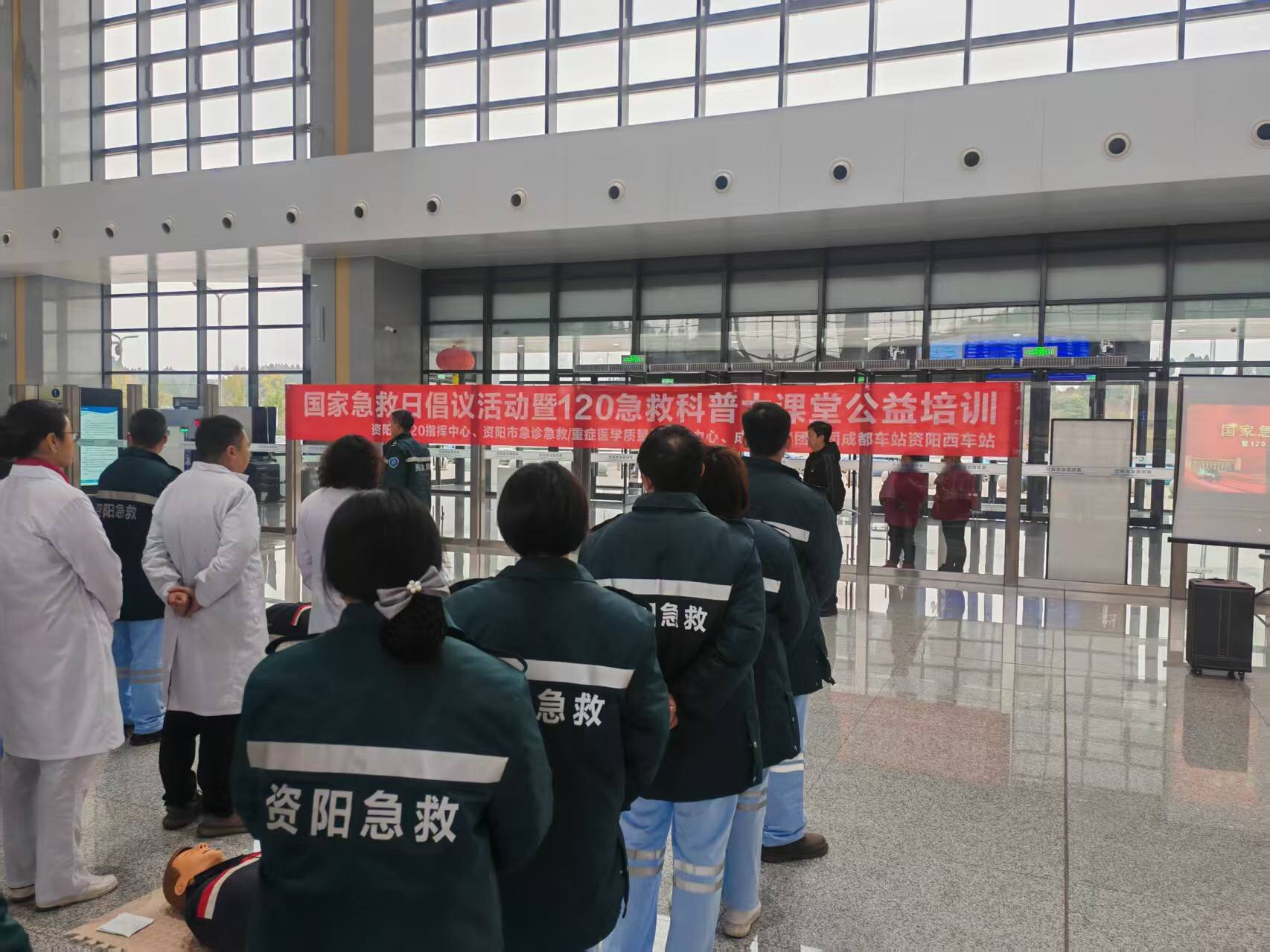 2026年1月20日上午,由资阳市卫生健康委员会主办,市120指挥中心、市中心医院、市人民医院、市中医医院及雁江区人民医院共同承办的“国家急救日倡议活动暨急救科普大课堂公益培训”,在资阳高铁北站与西站同步启动。